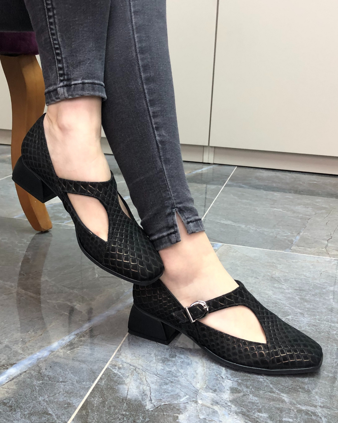 4,5 cm topuk yüksekliği, gün boyu konfor sağlarken zarif bir duruş sunar.